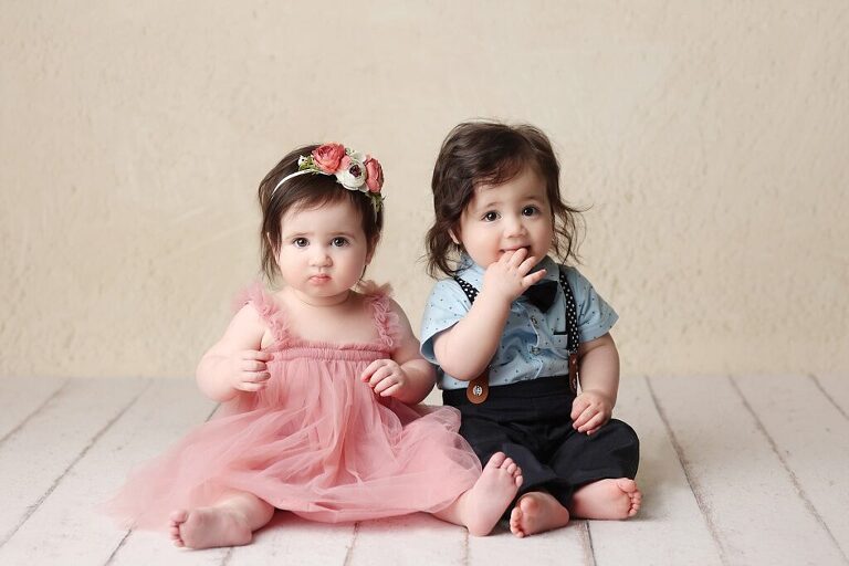 Finally, working with twins is just plain adorable. Seeing them sit next to each other with their tiny toes touching while they have their first taste of cake is such a special and fun experience. As a photographer, it’s my job to capture those special moments and create images that families will cherish for a lifetime. The photos from a twin session are often some of the most heartwarming and touching images I create.